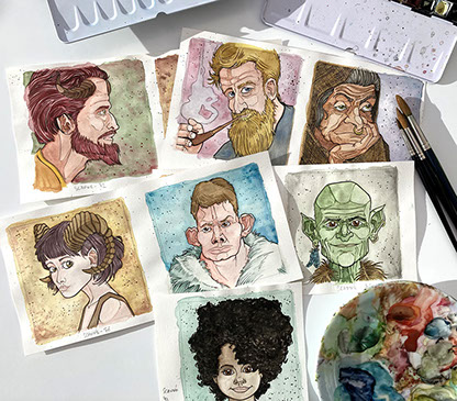 Le premier jeu intitulé « Les portraits » rassemble 85 cartes illustrées de portraits de personnages réalisés à l’aquarelle. L’objectif de ce panel est de proposer une gamme diversifiée de visages qui sortent des clichés habituels.