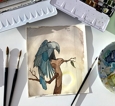 Une illustration originale réalisée à l’aquarelle du buste de votre personnage de JDR sur base de votre description détaillée (format 12 cm/ 12 cm) + le bestiaire de 10 créatures originales imprimé sur papier grainé 224gr signé et numéroté glissé dans une enveloppe scellée + l’ensemble du pack « Intégral » y compris la clé USB